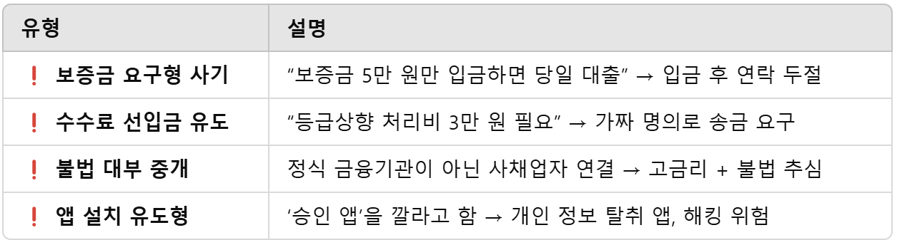❗위 문구는 100% 사기, 혹은 불법 사금융 가능성이 매우 높습니다.