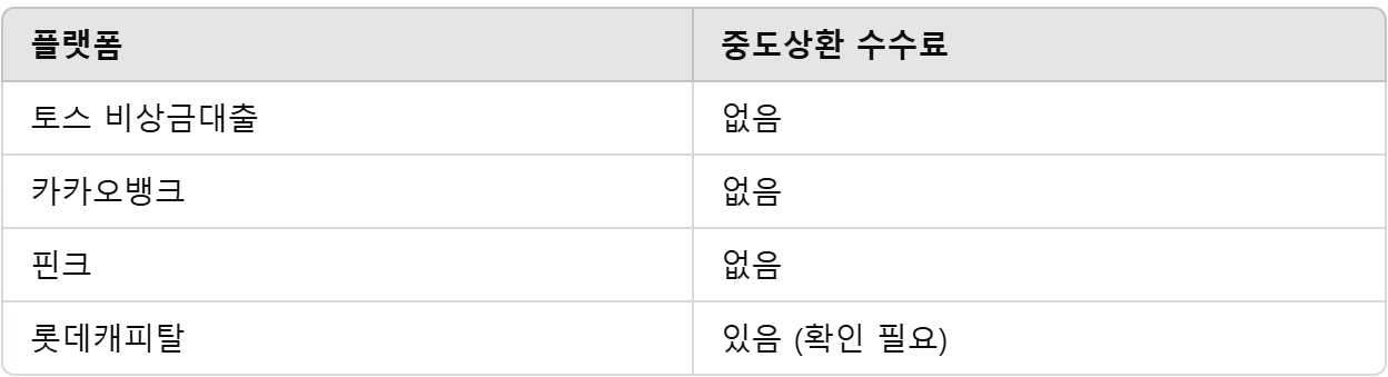 - 일부 금융사는 중도상환 수수료 없음